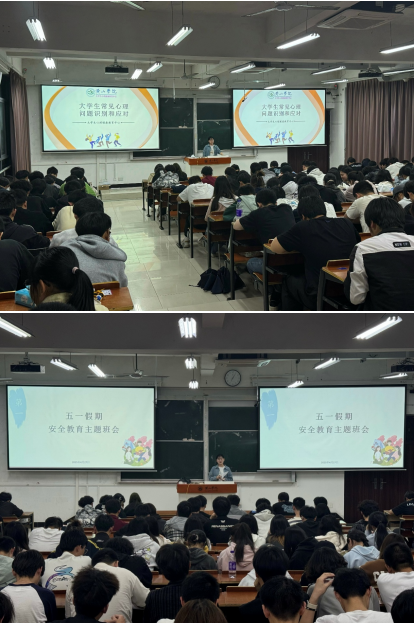 本次班会以大学生心理健康教育为核心,以五一假期安全教育为要点,同时提及了就业与升学、尊重与礼貌等多重话题,内容全面,讲解详尽。在心理健康教育环节,吴珊珊老师以“大学生常见心理问题识别和应对”为主题,结合丰富的实际案例,深入剖析了大学生在学业、社交、情感等方面容易出现的心理问题。比如,面对学业压力产生的焦虑情绪,以及在人际交往中遭遇的孤独感等,详细讲解了这些心理问题的具体表现,方便同学们及时察觉自身或身边同学的心理异常情况。
