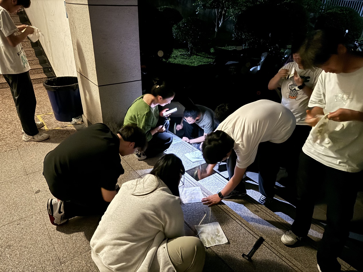 随后的“身体情绪信号解码”环节,通过案例分享、小组讨论,同学们深入剖析了常见情绪背后的身体信号。在热烈的讨论氛围中,大家各抒己见,互相交流在学习、生活中遇到情绪波动时身体的反应,共同探讨如何通过关注身体信号,及时察觉并调节情绪。活动最后,“植物拓染”体验将现场气氛推向高潮。同学们挑选喜爱的植物叶片,经过敲打、按压,让植物汁液在布料上留下独特的图案。在这个过程中,大家专注于手中的操作,内心逐渐平静,情绪也随之得到舒缓。许多同学表示,拓染的过程就像情绪流经身体,从最初的杂乱到最终呈现出美丽的图案,让人感受到情绪转化的奇妙。