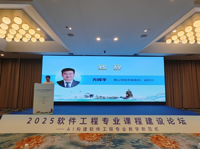 校党委委员、副校长方辉平致欢迎词,对参与活动的领导、专家学者表示诚挚的欢迎,介绍了我校的基本情况,并表示学校能够承办2025软件工程专业课程建设论坛是我们的荣幸,学校一定全力为论坛做好服务,也恳请各位专家与会期间对我校的计算机软件类课程进行全方位的指导,促进和提升黄山学院软件工程高水平师资队伍建设和人才培养,为我校的发展建言献策,多提宝贵意见。期望与会人员通过此次论坛能够收获丰硕成果,增进经验交流。