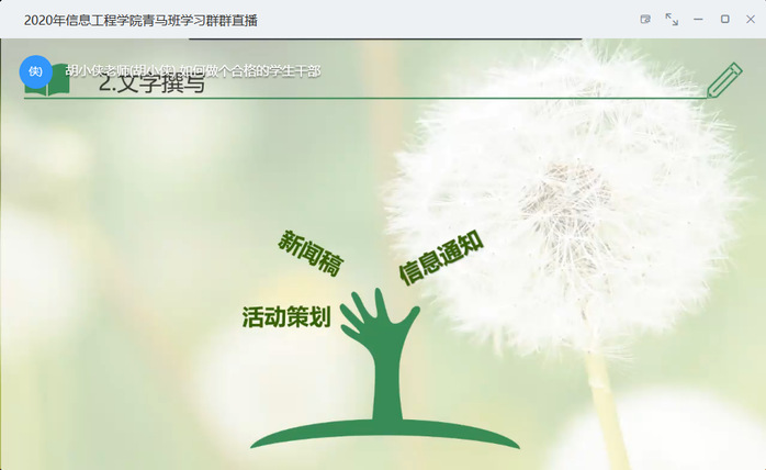 6月23日,信息工程学院2020年“青年马克思主义培养工程”线上培训班第二课开课了。本次培训课程包含了大学生活、入党须知以及如何做个合格的学生干部等课程,共50余人参与此次学习。