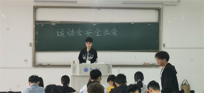时间不快不慢来到了十月底,这也是黄山学院一年一度的传统,举行校运动会,开展运动会的同时,最重要的是注意生命安全。为增强同学们的安全防范意识,全面普及校园安全常识,安全为委员阮子康开展了以“校园运动会安全”为主题的班会,此次班会于10月28日在教学楼2407教室召开,电子信息工程一班全体学生参加了此次班会。