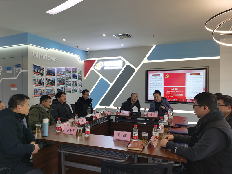 2020年12年21日下午,信息工程学院长吕海江,率计算机专业教研室主任方徽星、软件工程教研室主任李成、电子信息工程教研室主任孙剑以及专业教师程和平、胡新广到黄山徽扬物联科技有限公司参访。公司总经理黄文、技术总监汪康、行政总监王媚、运营总监余哲以及我校毕业生刘智慧、胡志强等人热情接待了吕院长一行。