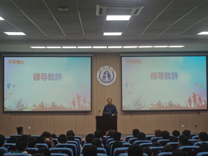 院党委书记刘承红在致辞中给出了十个关键词,首先强调要学生绷紧“安全”这根弦,鼓励学生适应大学生活,保持诚实、朴素的传统美德,提高修养加强合作,在学习中不断进取,并常怀感恩之心,通过四年努力使自己成为栋梁。