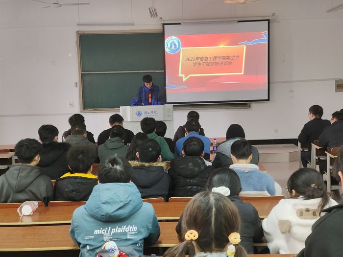 为进一步加强我院学生会自身建设,增强学生会干部的自我教育、自我管理的意识,明确新一年的工作目标,信息工程学院团委在率水校区文端楼2411召开学生会干部述职评议大会。