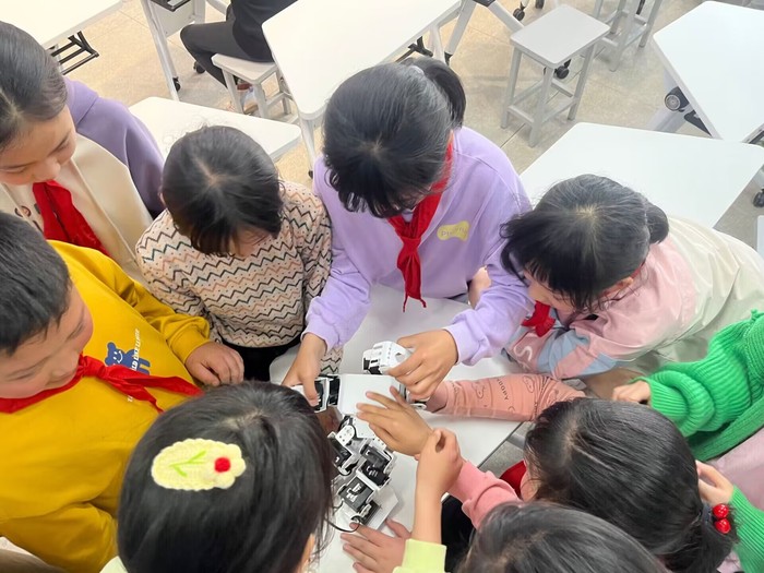 4月12日下午,信息工程学院暖心向阳志愿服务队来到了位于阳湖镇的柏山小学,为小学生们开展了一节充满乐趣的机器人课程。