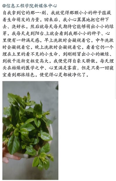 为了美化同学们的居住环境,在培养植物和记录植物生长的过程中感受绿色气息,信息工程学院于近期举办了绿色寝室活动。