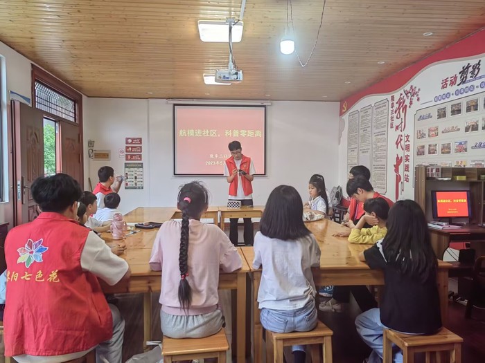 志愿者们通过寓教于乐的科普知识讲解,给小朋友们系统地介绍有关模型的科学知识、模型的发展历程。首先,志愿者通过PPT向小朋友们介绍了无人机的结构、飞行原理、操作流程和注意事项,并以问答的方式与小朋友们进行了互动。在志愿者讲解完之后,他们向小朋友展示了无人机飞行,并让小朋友们动手体验了无人机的操控。