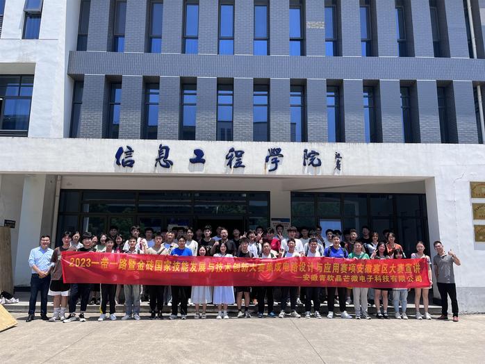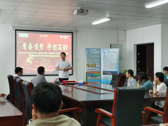 2023年6月9日上午,黄山学院第一届“星芯之光”集成电路大赛暨“青软晶芒杯”集成电路知识竞赛和金砖国家技能发展与技术创新大赛选拔赛颁奖典礼在6410会议室举行。信息工程学院副院长焦铮、集成电路专业老师宁仁霞、铁瑞芳、何宁业、申福伟参与颁奖仪式。