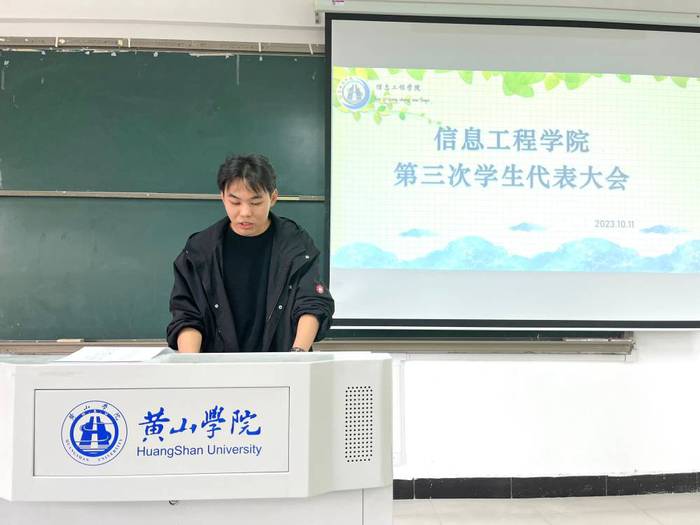 大会第一项议程,信息工程学院学院学生会主席余绍鹏作2022-2023年度学生会工作报告。全面总结了信息工程学院自第二次学代会以来开展的学生会工作。大会第二项议程,全体学生代表投票选举信息工程学院新一届学生委员会委员。大会第三项议程,全体学生代表投票选举产生信息工程学院学生会组织主席团成员。大会第四项议程,全体学生代表投票选举产生出席学校学生代表大会的代表。大会第五项议程,听取并审议第六届黄山学院学生委员会委员候选人预备人选。