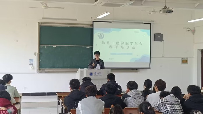 4月10日中午12:00,信息工程学院学生会在率水校区文端楼2407教室召开全体成员培训大会。学生会全体人员参加此次会议。