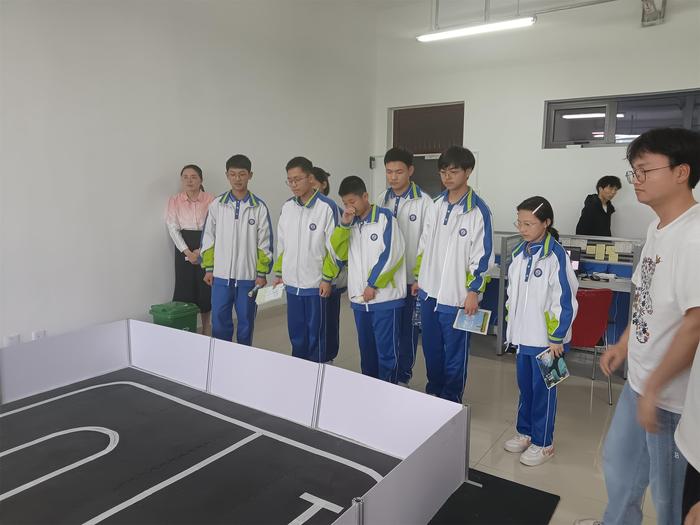 在实验室中,海阳中学的同学们被各种先进的智能车和机器人所震撼。信息工程学院创新实验室的师生耐心细致地为他们讲解了实验室的竞赛成果和未来发展方向,让他们对人工智能和机器人领域有了更清晰的认识。