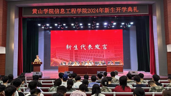 教师代表李建森通过分享自己的求学经历,鼓励所有新生积极融入大学生活,全面发展自己。2023级软件工程钱金金作为老生代表,和新同学们分享了自己一年大学生活的心得,建议大家要明确目标、确立方向、主动学习、全面发展,在黄山学院收获自己的成长。2024电子信息工程专业彭克宇代表新生发言,他表达了对大学生活的憧憬和期待,表示要认真学习、勤于思考、勇于实践,在努力和拼搏中书写人生华章。