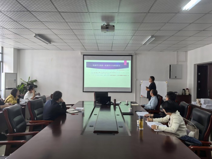 活动中,沈来信教授做了机器学习模式浅谈与第一章绪论的介绍,通过多个案例讲解了曲线拟合、小波等多种变换以及希尔伯特空间中的计算过程。与会教师积极讨论了特征提取的多种形式以及数学上泛函分析的表达方式等。