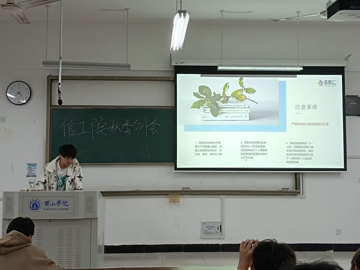 康阿辉详细介绍了活动申请流程,申请前要注意活动策划书、申请表的撰写。接着康阿辉给大家展示了正确的班级志愿活动申请表,明确了不属于志愿活动的活动类型,而后对活动管理的志愿者管理、招募管理、签到管理进行了详细介绍。最后康阿辉对签到申请做出强调,开放类选择只允许本组织内志愿者签到,签到范围校内300米校外500米(特殊情况需说明),严禁先举办活动后进行补录。