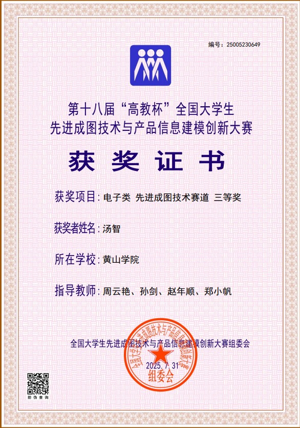 近日,第十八届“高教杯”全国大学生先进成图技术与产品信息建模创新大赛公布获奖名单,创客空间汤智同学获得个人国赛三等奖(电子类)、团体国赛三等奖(电子类)各1项。