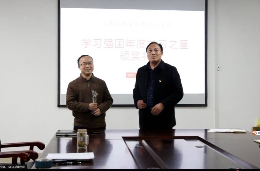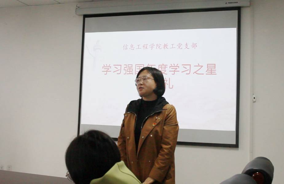 2021年4月14日下午,信息工程学院教工党支部在院会议室举行2021年度一季度学习强国“学习积极奖”颁奖仪式,仪式由支部副书记韩静主持。