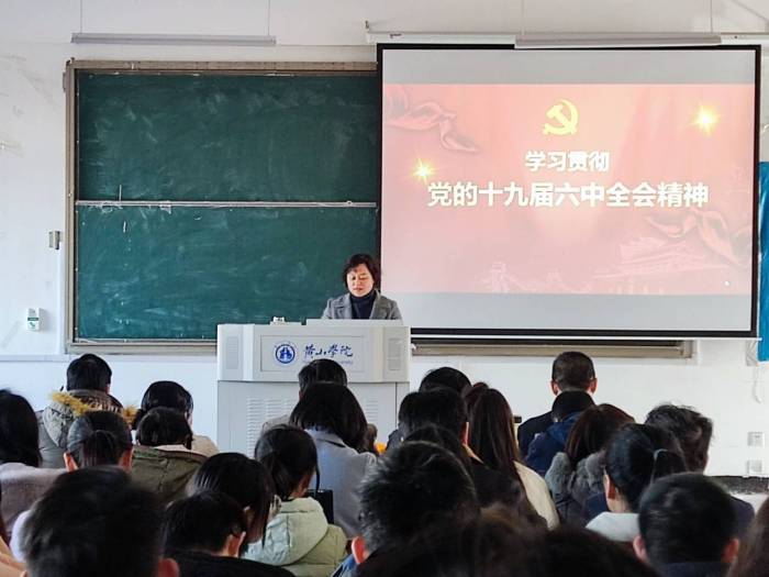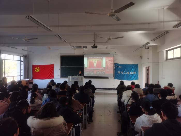 12月22日下午,信息工程学院举办党的十九届六中全会精神宣讲报告会,马克思主义学院副教授陈玲以“学习贯彻党的十九届六中全会精神”为主题作解读辅导,信息工程学院全体教师党员及第五期团校全体学员参加了报告会。