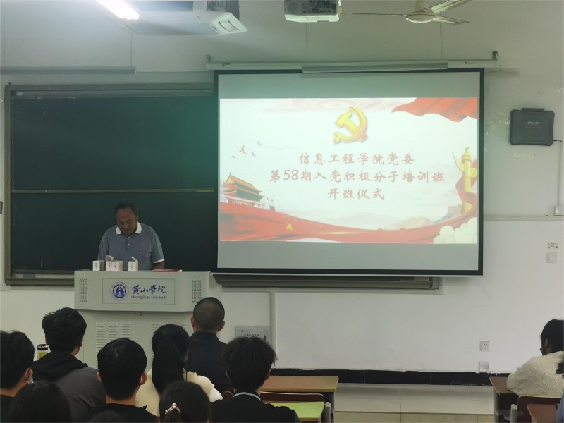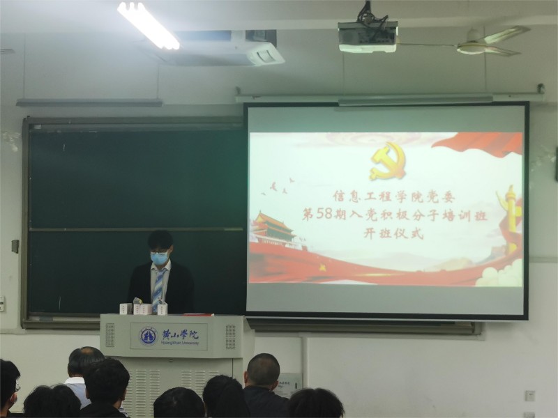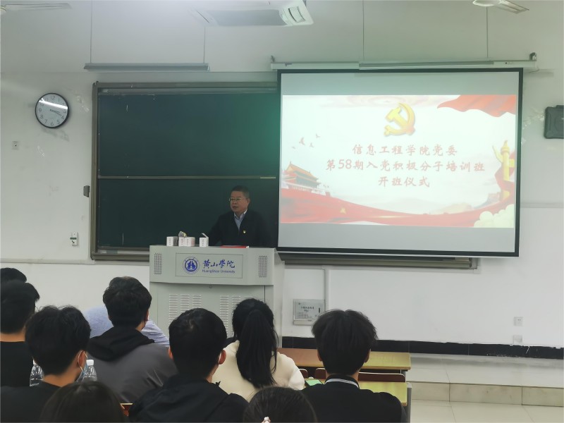 2022年10月12日,信息工程学院党委第58期入党积极分子培训班开班仪式在2406教室举行。校党委委员、组织部部长周权出席开班仪式,信息工程学院党委书记刘承红、其他党委委员、党支部书记及89名入党积极分子参加开班仪式。