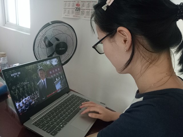 纪念仪式上,习近平等党和国家领导人同首都各界代表一起,在中国人民抗日战争纪念馆向抗战烈士敬献花篮。在座教师认真观看直播,为逝去的抗战英雄站立默哀三分钟,在家的学生党员也通过各种途径认真收看了直播活动,并进行了交流反馈。