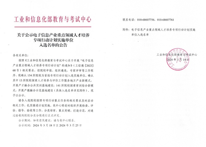 黄山学院信息工程学院2024年3月获批建设的工信部教育与考试中心“电子信息产业重点领域产才融合基地”,是全国首批13所高校之一,是面向集教育、培训、科研和实践于一体的专业人才培养基地。人才基地面向功率半导体集成电路及汽车电子领域两大产业领域,立足于黄山、面向安徽、辐射长三角。