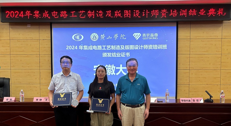 经过为期一周的紧张学习与深入探讨,黄山学院首届集成电路工艺制造及版图设计师资培训班圆满落下帷幕。7月27日下午,集成电路工艺制造及版图设计师资培训结业典礼在我校文昌楼南楼211会议室成功举行,校党委委员、副院长张小明参加并致辞,合肥工业大学何晓雄教授、青岛青软晶尊集团代表王文明、参训学员代表合肥师范学院鲁世斌教授分别发表讲话。本次典礼由信息工程学院副院长焦铮主持。