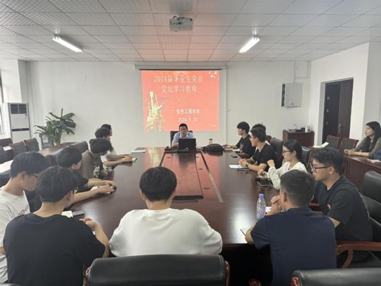为认真贯彻党中央、省委决策部署和学校党委工作要求,进一步提高毕业生党员的思想觉悟、党员意识、党性修养,2024年5月20日下午,信息工程学院纪委针对毕业生党员开展党纪学习教育,进一步提高毕业生党员的思想觉悟、党员意识、党性修养。
