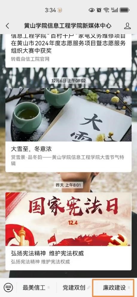 学院纪委不仅在院会议室打造廉洁文化阵地,还充分发挥新媒体优势,创办新媒体廉洁文化栏目,在信息工程学院公众号开设“廉洁建设”专栏,展示红色教育、历史文化资源中的廉洁理念及典型,通过线上线下相结合的方式统筹廉洁文化阵地建设,扩大廉洁文化的传播范围。